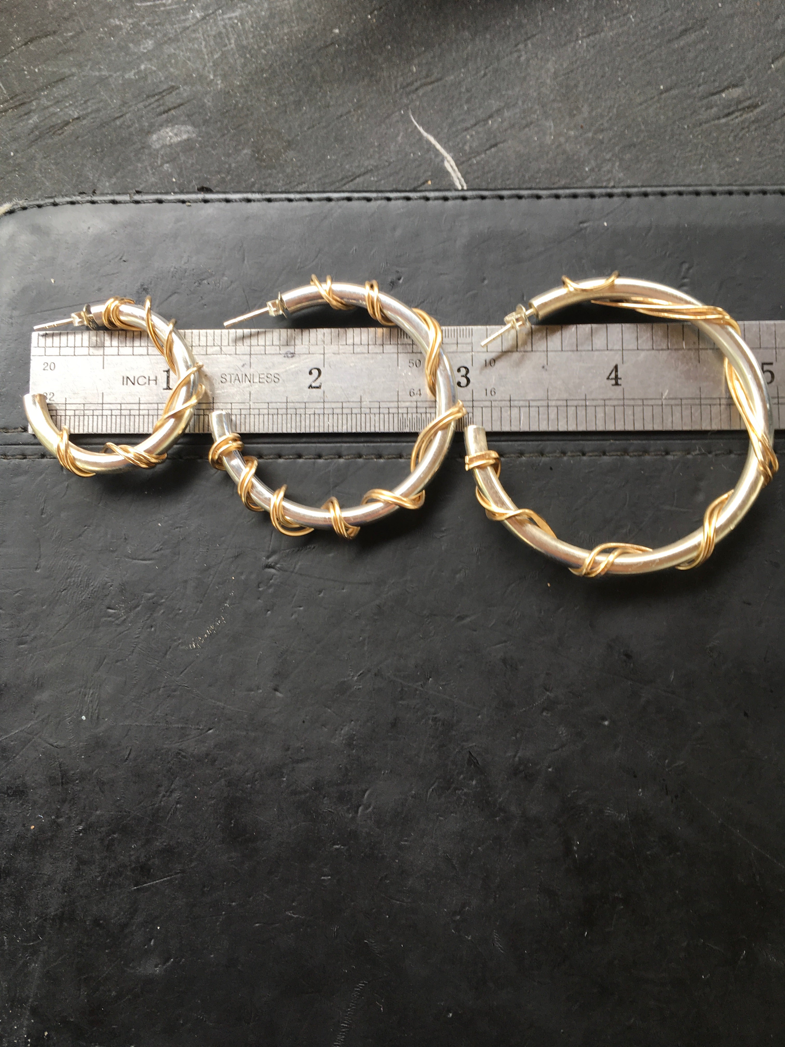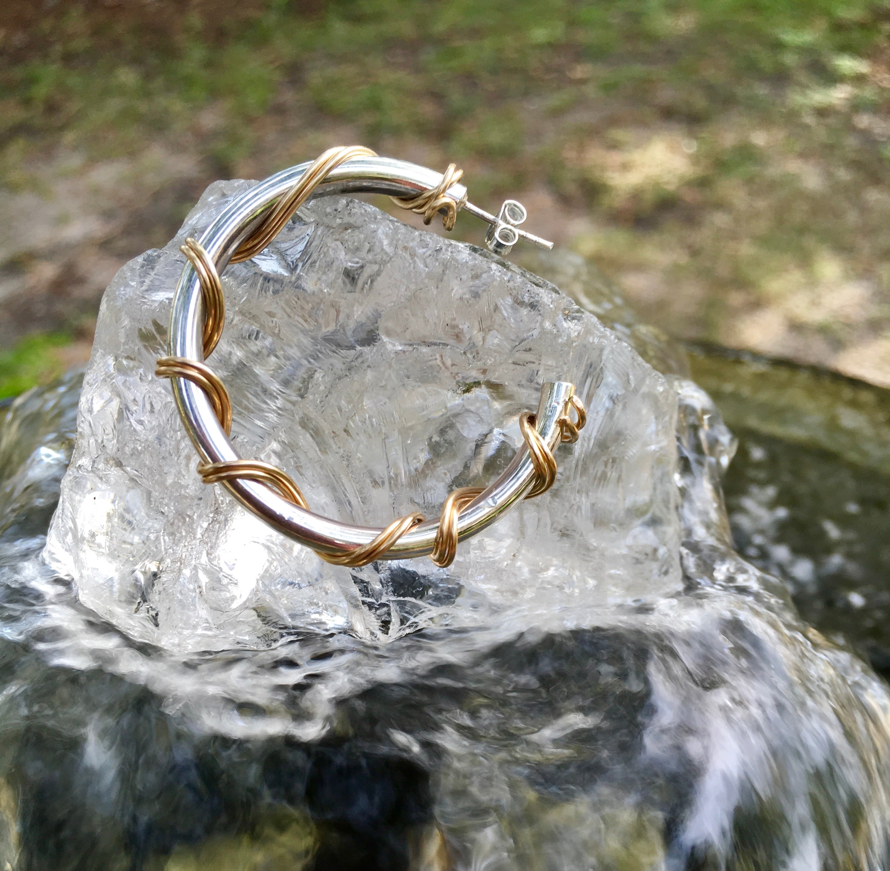 These earrings are going to be your everyday no matter what to wear earrings! Everyone I sell these to are crazy about them!! Handmade and hand wrapped by me aka “Shug”. The earrings are 925 sterling silver with 14kf Gold wire wrapped. They are light weight and beautiful.